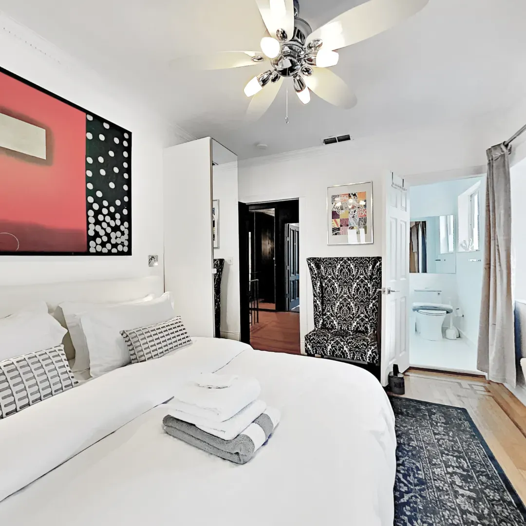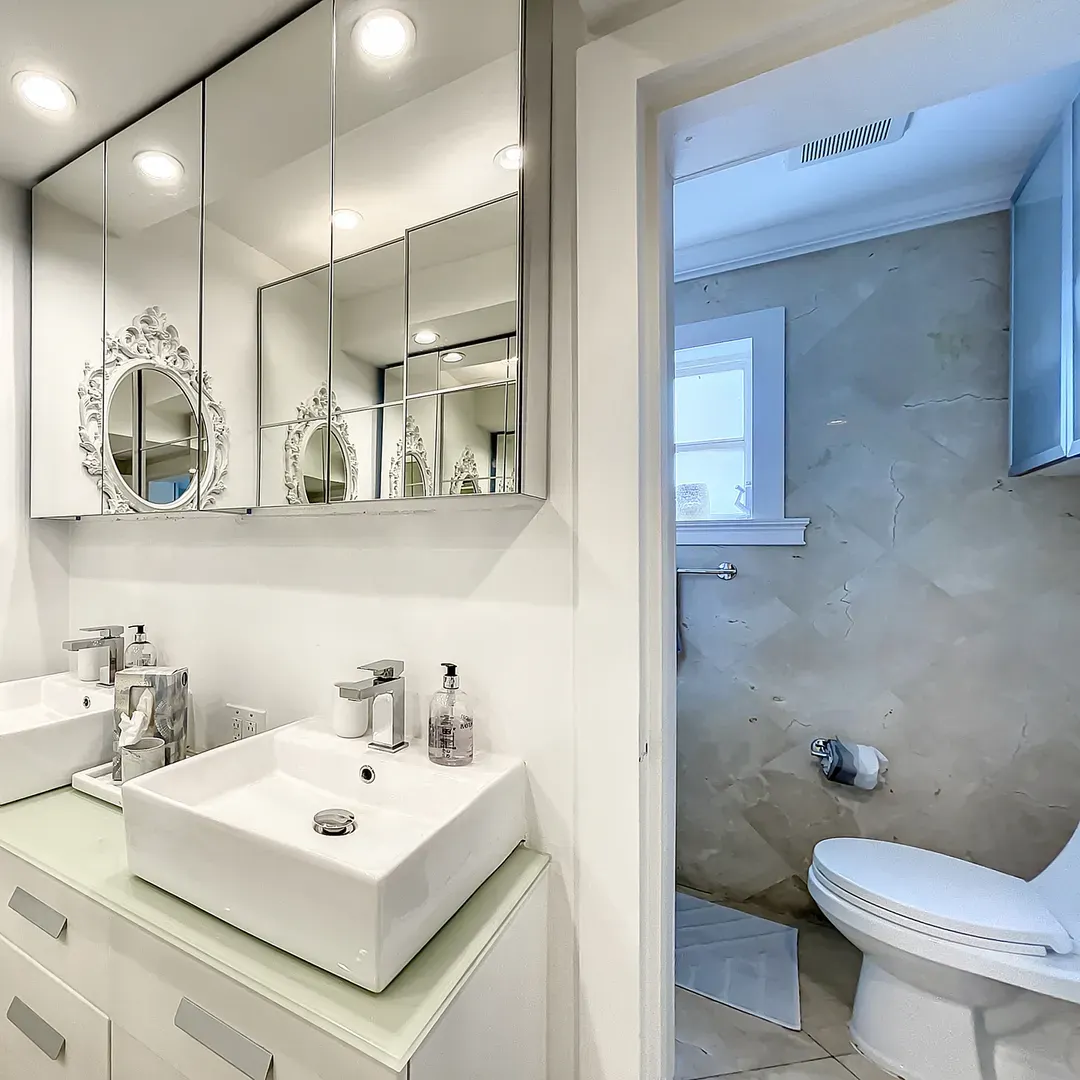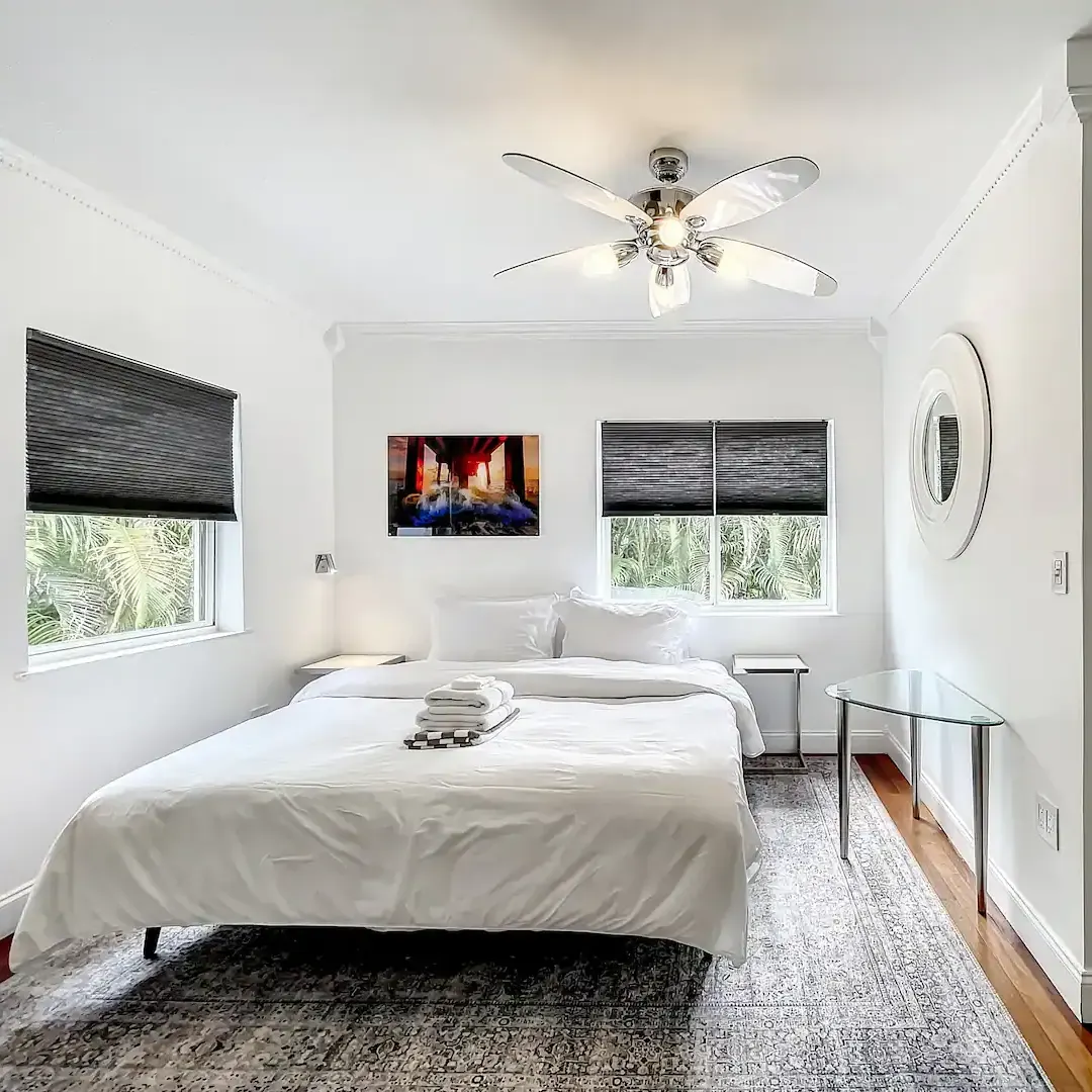 Villa Laurie Guesthouse - This stunning Historic Smaller Mediterranean Villa is the perfect blend of elegance and comfort. With a flexible and customizable bed-setup option, you can choose to have 2 king-size beds or 4 single beds on the 2nd floor, and even turn the downstairs living room into a 3rd bedroom with a private bath. The first floor boasts a dining room and kitchen, perfect for socializing and entertaining. But that's not all! You can also enjoy a living room with a 70-inch Smart TV, as well as a kitchen-dining room combination with its own 70-inch smart TV for relaxing evenings. The 2 rooms on the first floor have a wall with 8 feet dual pocket doors that can close for privacy, creating a private bedroom suite. The fully equipped kitchen has top-of-the-line stainless steel appliances, making cooking a breeze. And when it's time to dine, the dining table inside can accommodate up to 12 people. It's the perfect place to unwind and enjoy the beautiful weather. This home is your sanctuary to relax in and is a perfect place to enjoy quality time with friends or family.