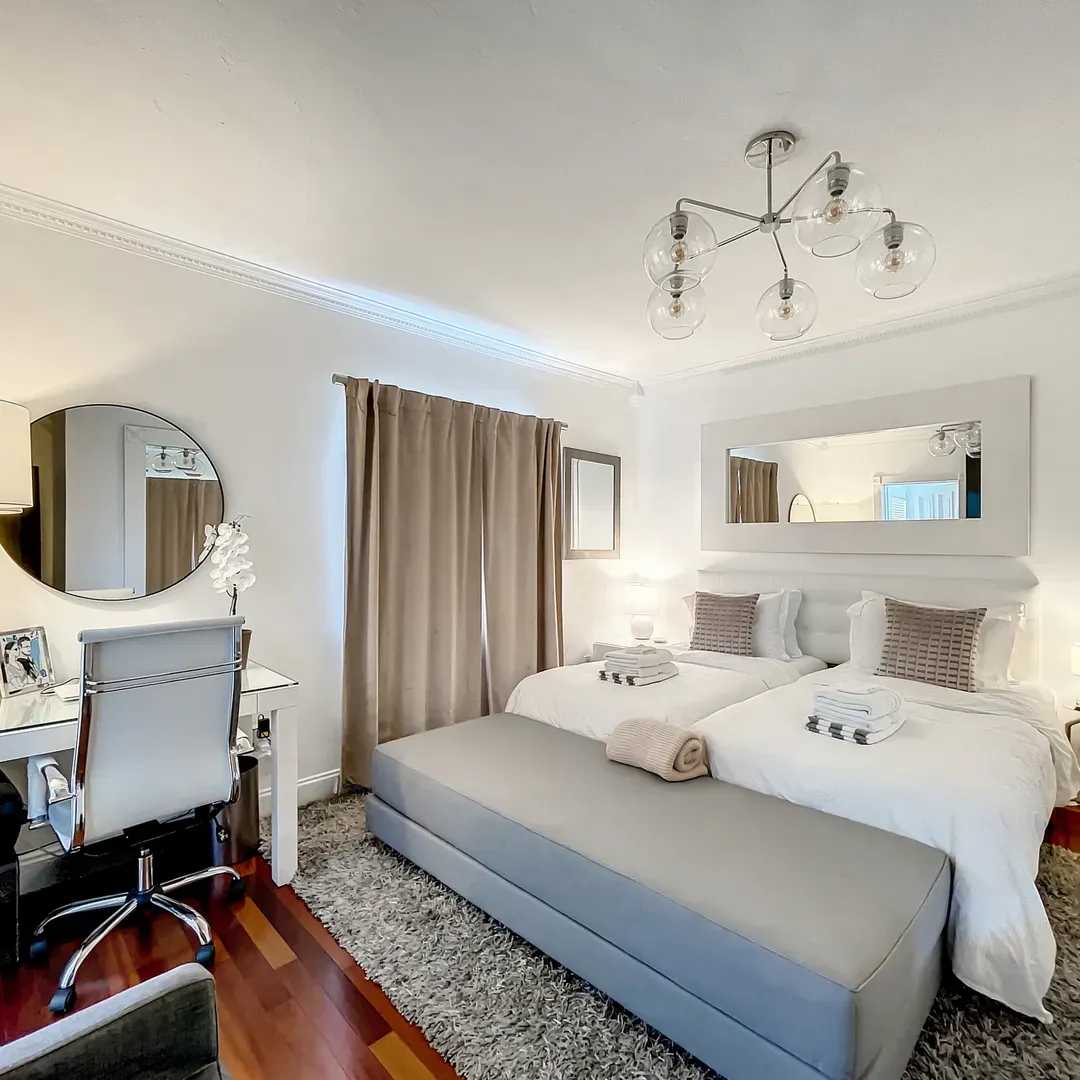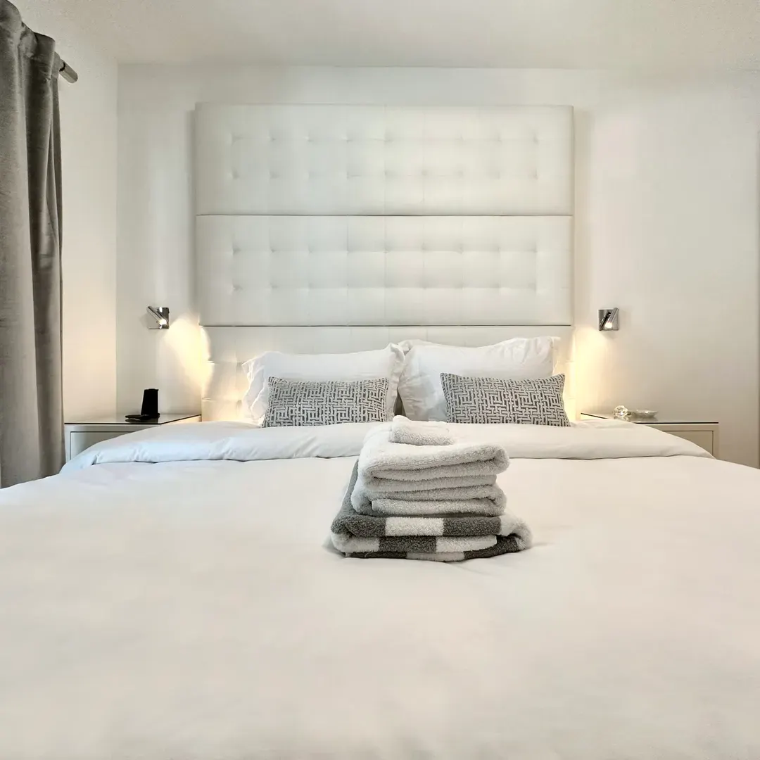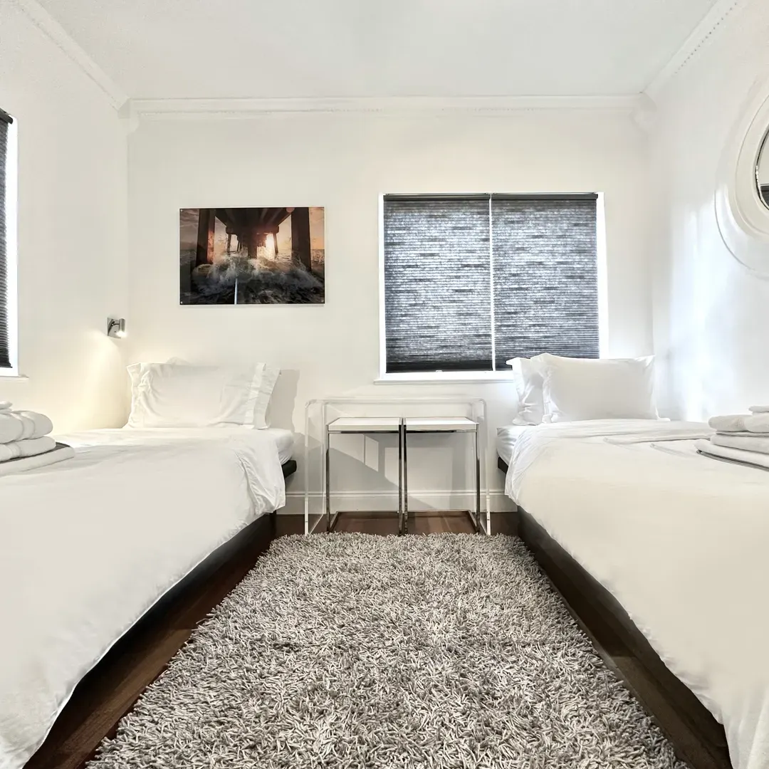 SOPHISTICATED CUSTOMIZED BED SETUP: Please see the floor plans for furnishings and bed setup options. Please note that we have a sophisticated and flexible customized bed set-up for each guest, where each bedroom can be set up with 1 King or 2 Single beds. For king-size bedding, we use a memory foam mattress topper, a king-size mattress cover, a king-size fitted sheets so there is no seam, and where you can enjoy the extra memory foam comfort.